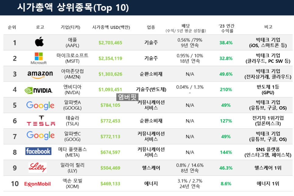 2024년 2월 실적 발표에서 NVIDIA가 3위로 아마존을 넘어섰습니다.