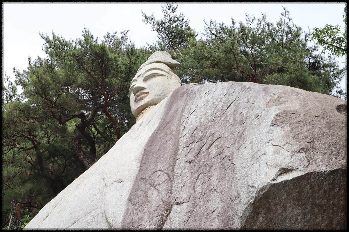 자연 암벽에 신체를 선으로 새기고 머리는 따로 올려 놓은 불상으로 12.38미터로 거구의 불상입니다. 이러한 형태는 고려 시대의 불상으로 경기도 파주 용미리 `마애이불입상` 이 그러한 모습으로 보물입니다.