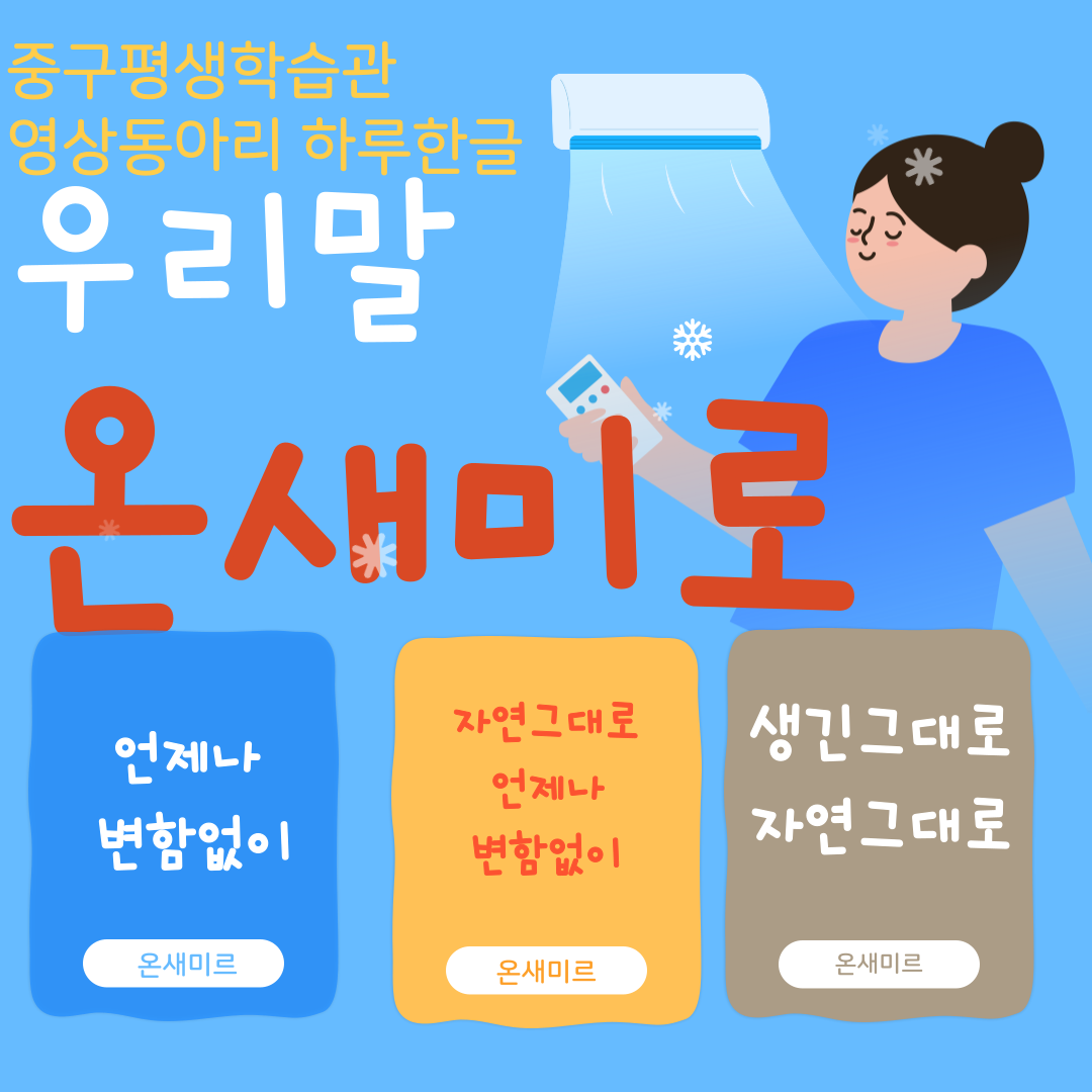 이제 이 아름다운 우리말 온새미로를 주제로 작품을 만든 중구학습관 영상제작동아리 목요작가 송병길 선생의 영상을 소개한다.