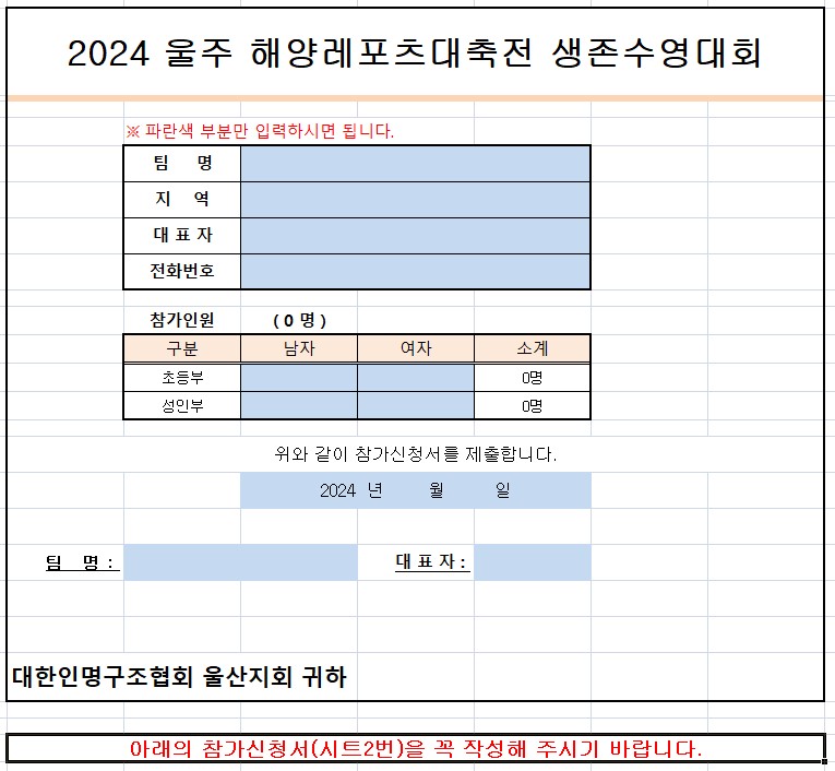 - 대 회 명 : 2024 울주 해양레포츠대축전 아쿠아슬론대회 (수영+달리기)