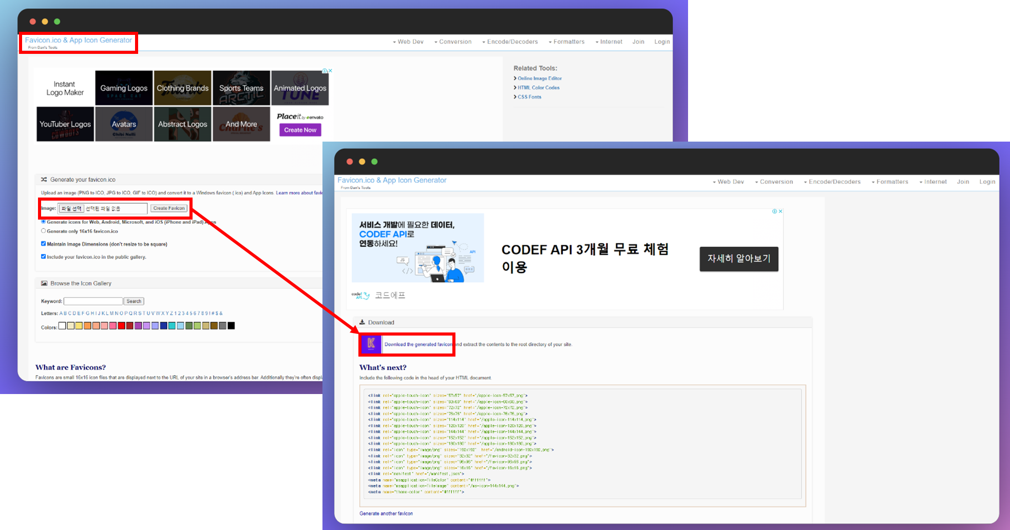 파비콘 만드는 방법까지 진행하면 아이콘으로 사용할 수 있는 파일도 생성돼서 이런 문제를 피할 수 있답니다.