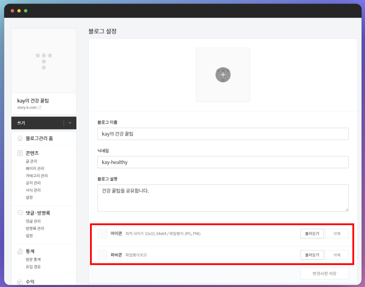 자신의 블로그에 아이콘과 파비콘을 설정하면 브랜딩에 효과적입니다.