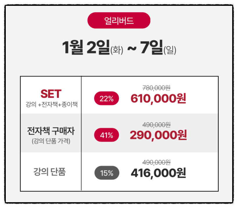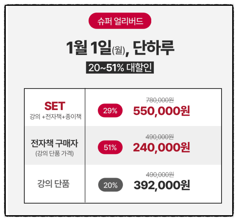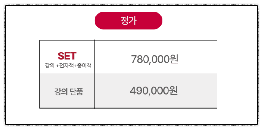 2024년 정상적인 초사고 강의와 책 구성 가격표