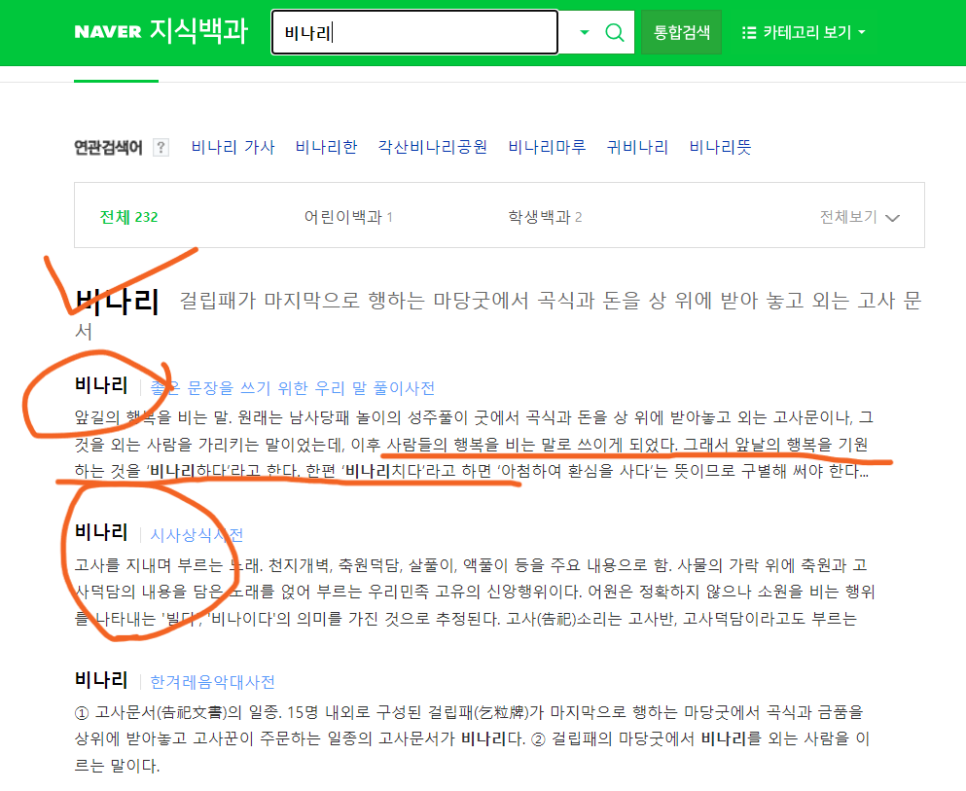 비나리의 네이버 검색 결과 화면 캡처