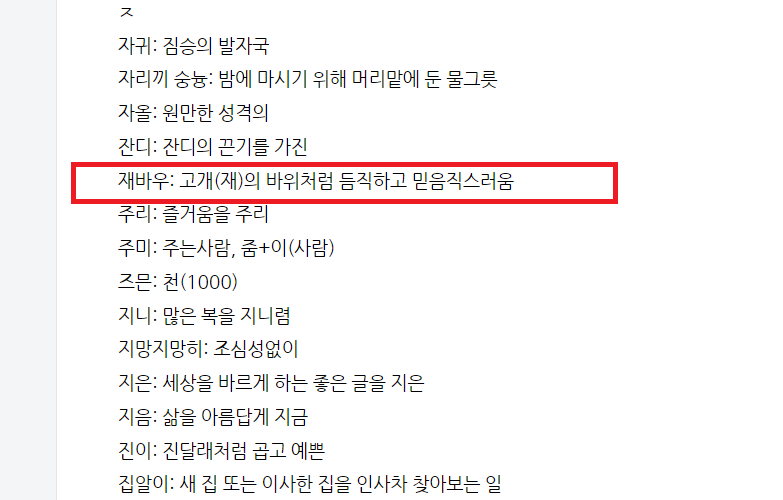"ㅈ'으로 시작하는 예쁜 한글 단어