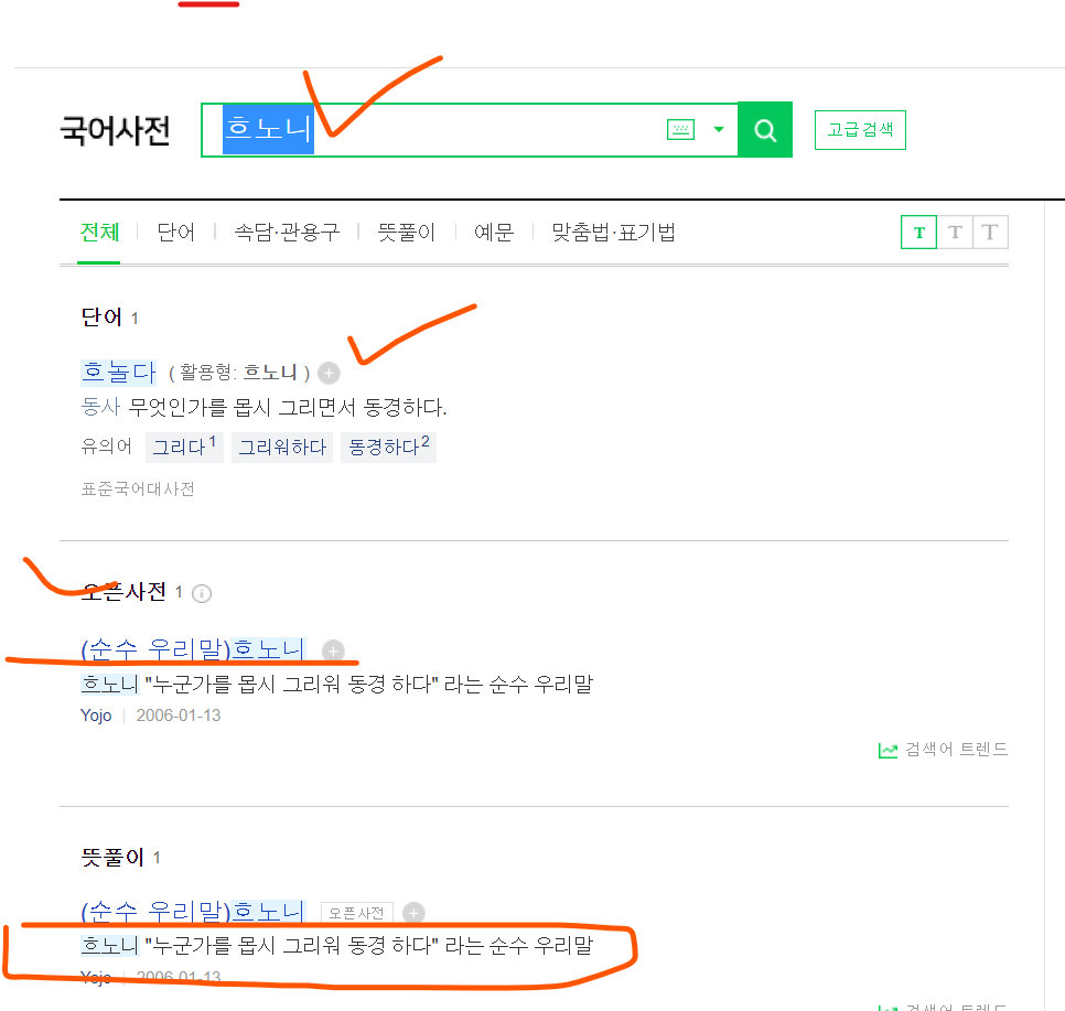 흐노니를 검색하여 우리말을 검증하여야 한다.