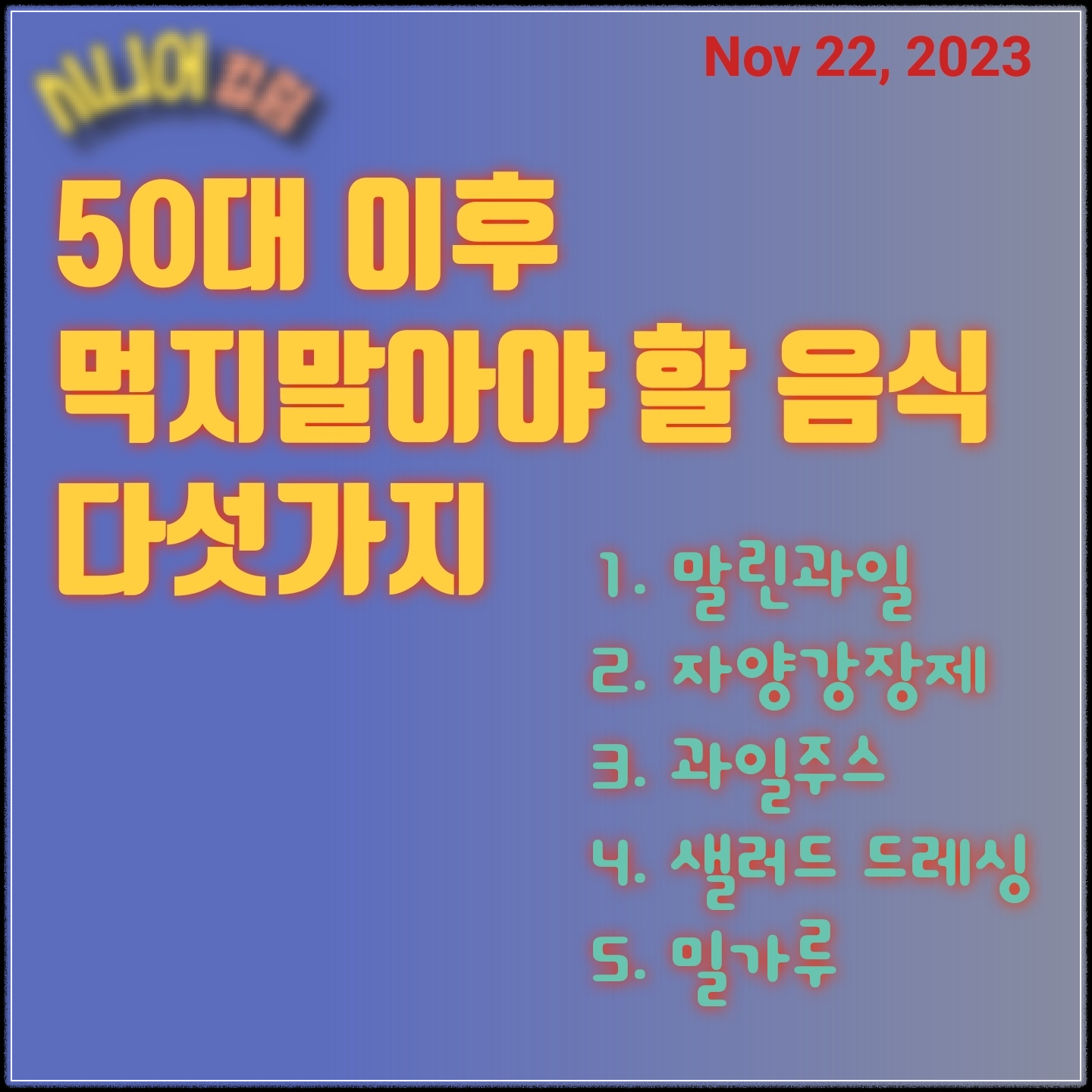 이 표를 참고하여 50세 이후에는 위에 언급된 음식들을 제한적으로 섭취하는 것이 좋습니다.